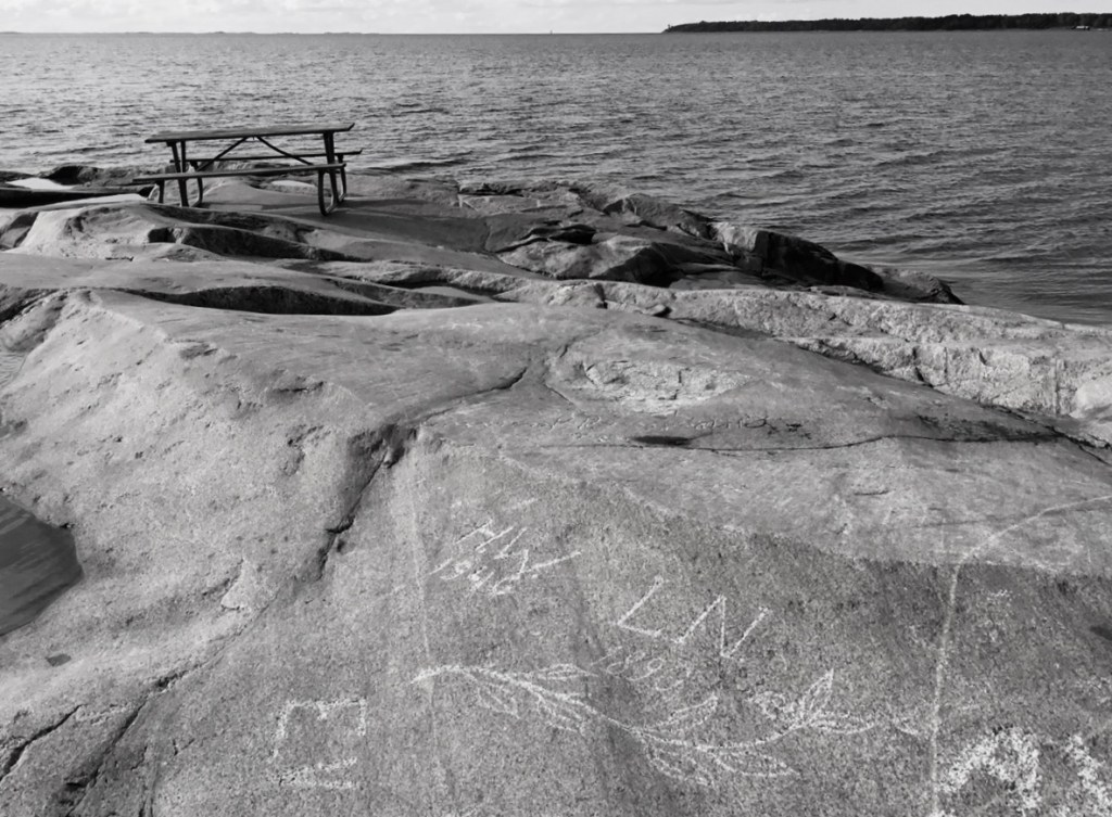 Vid skärgårdsstaden Öregrund har sommargäster, kungligheter och andra besökare ristat sina namn på havsklipporna i över hundra år. Det är en ganska okänd kulturskatt som sakta försvinner i vågor och glömska.