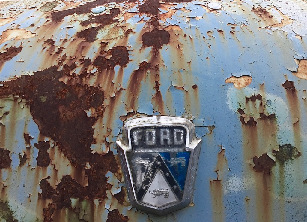Men det finns en mycket påtaglig och besvärande motsägelse i kontrasten mellan Forden som stått i skogen sedan 1960-talet, och den nya bilen som rullar ut från bilhallen. Perspektiven har vänts upp och ner.