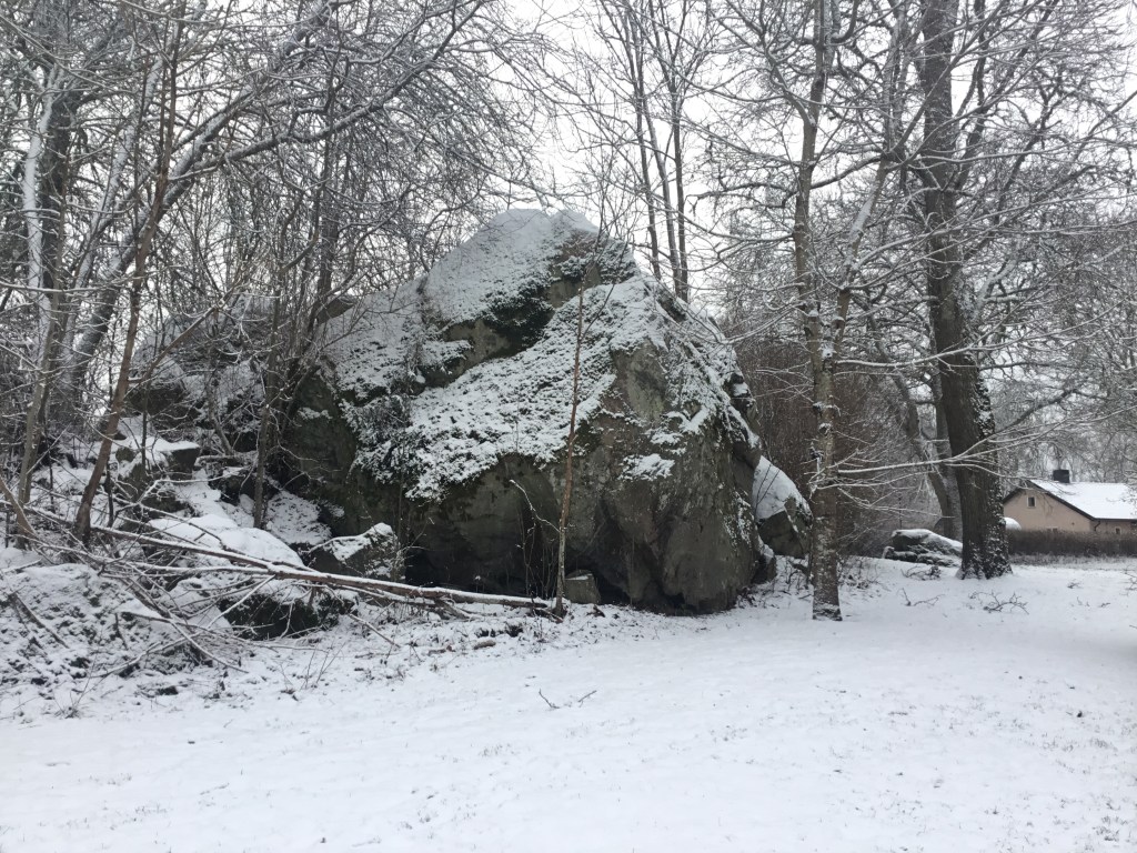Heliga Birgittas bönegrotta nummer 2 i Finsta. Redan på 1600-talet kopplades Heliga Birgittas uppenbarelser som barn ihop med flyttblock 2.