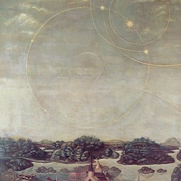 Detalj ur Vädertavlan från 1520 där vädersolar, ett halofenomen, är avbildade.