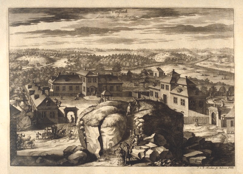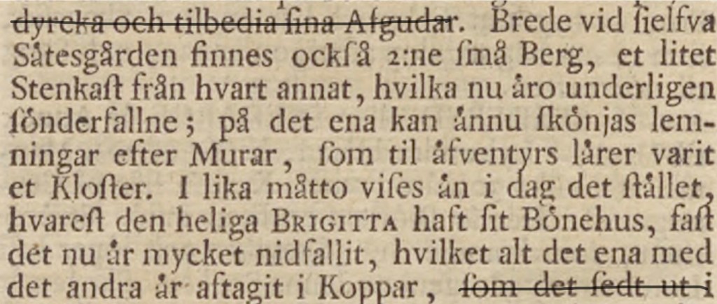 Det stycke i Lars Salvius bok ”Beskrifning öfver Sverig” från 1741, Finsta och Heliga Birgittas bönehus nämns.