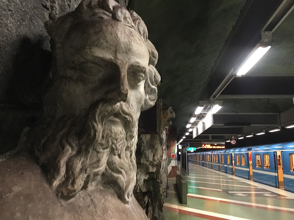 Det är få resenärer som reflekterar över avbildning av den världskända Rökstenen, en 1 200 år gammal runsten som står vid Röks kyrka i Östergötland, när de stiger av vid Bergshamra tunnelbanestation i Solna.