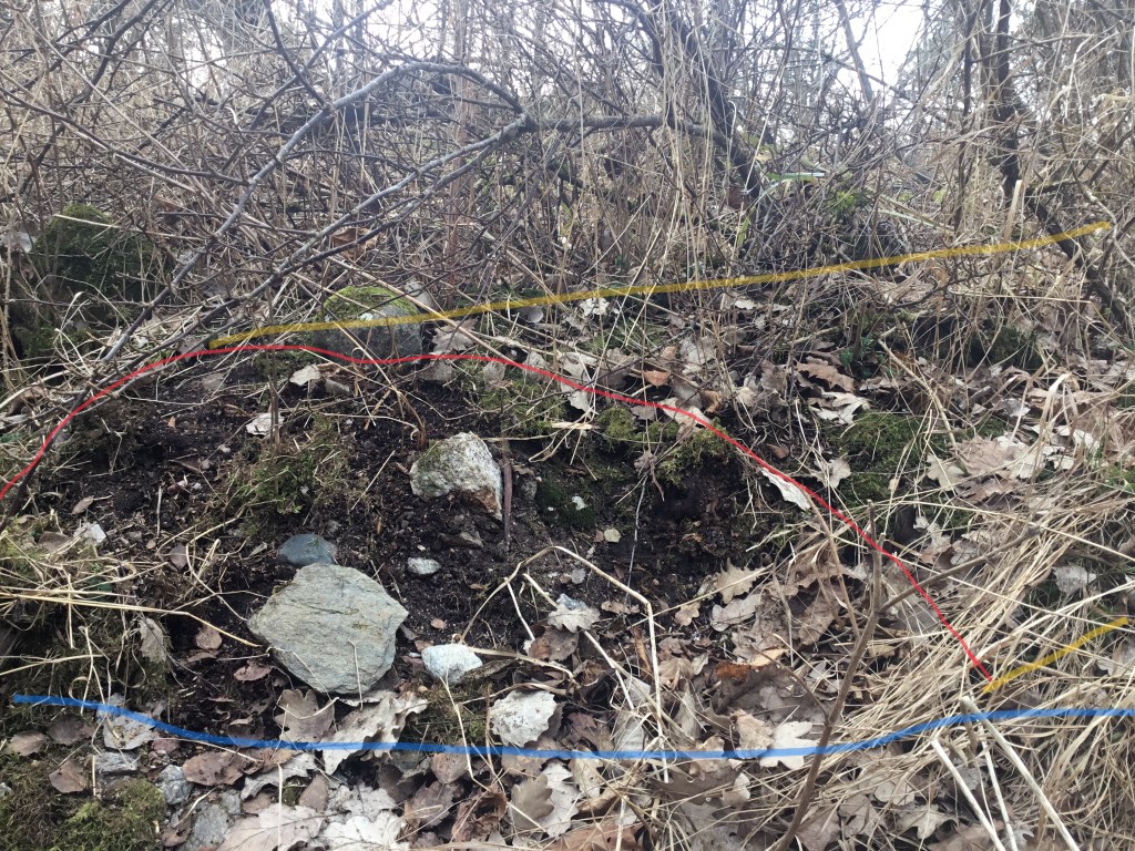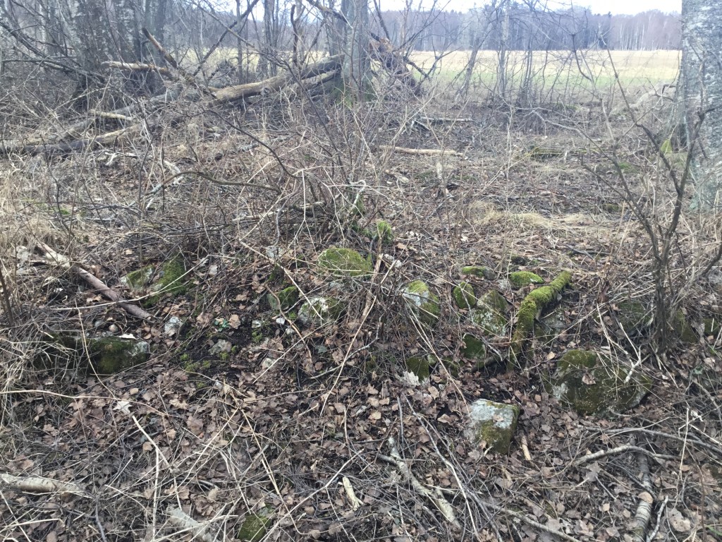 Det är en anonym lämning som delvis är övervuxen av träd och buskar och därför svår att se, även under vinterhalvåret.