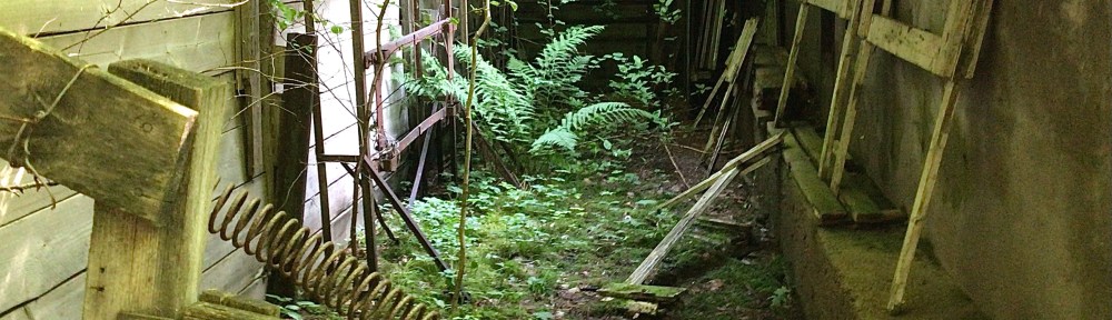 Dörren till den gamla klubbhuset står öppen. Någon har rivit runt där inne och kastat ut kvarlämnade prylar. Till vilken nytta, kan man fråga sig? Där inne finns bara gammalt bråte.