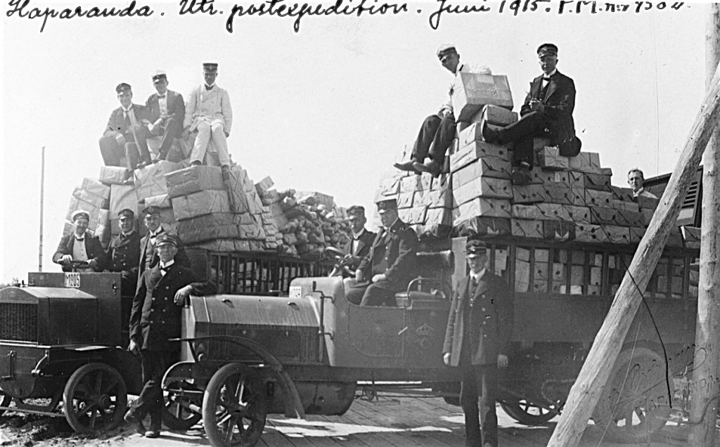Den är i juni månad och året är 1915. Vid Haparanda postexpedition tonar ett berg av paket upp sig. På två lastbilsflak sträcker sig enorma paketlaster mot skyn. Paketen är exemplariskt inslagna med brunt papper och perfekt knutna snören. Inte ett enda paket tycks vara sönderslaget, öppnat eller krossat. Sannolikt kom alla paketen fram – i tid.