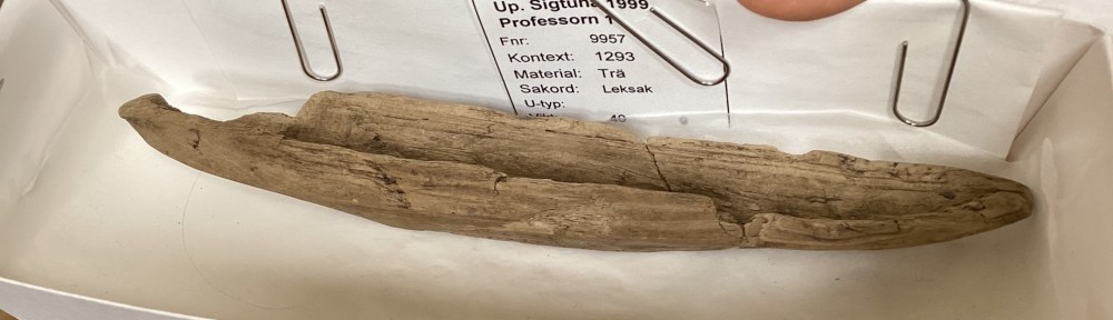 Barns leksaker är sällsynta fynd vid arkeologiska undersökningar. Från Mellansverige är en handfull leksaker från vikingatid och tidig medeltid kända. Det kanske mest uppseendeväckande fyndet är en täljd liten träbåt från vikingatidens Sigtuna stad.