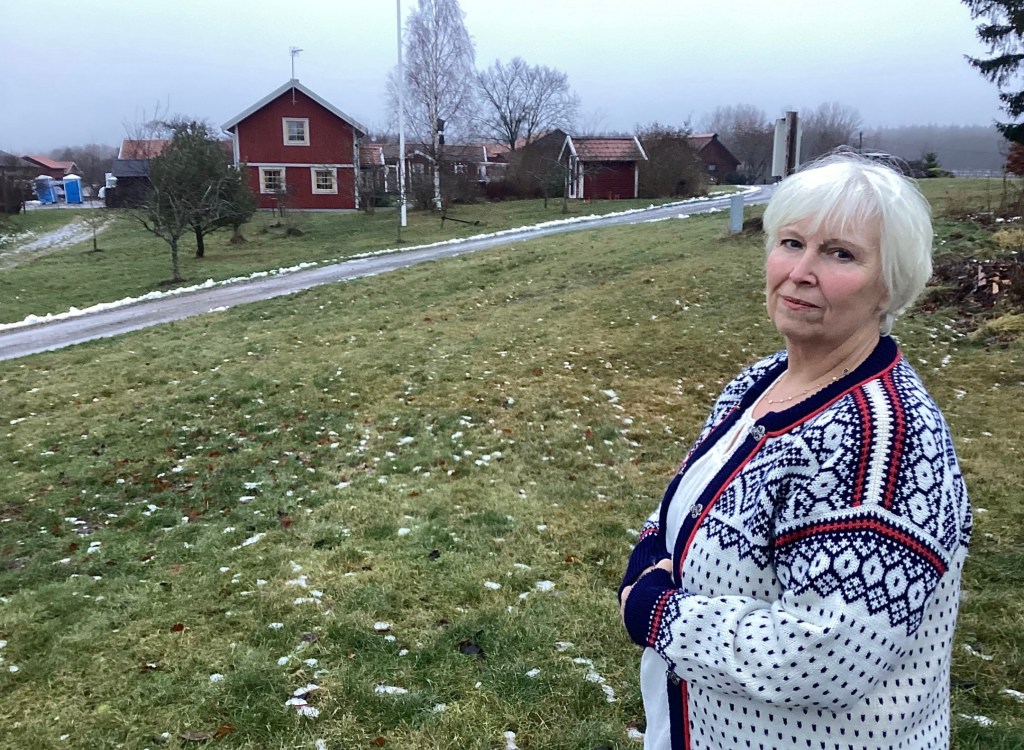 Marés Lendways släkt har bott och brukat den del av Älgesta som heter Södergården, sedan tidigt 1900-tal. För henne är platsens historia i högsta grad levande och något hon värnar om. Huset i bakgrunden markerar den platsen som arkeologerna hittade lämningar från vikingatida bebyggelse med 37 stolphål.
