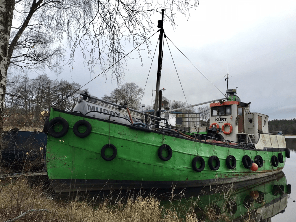 Vid Gustavsbergs strand ligger M/S Kurt som byggdes år 1908. Det cirka 31 meter långa och 6 meter stora skrovet är av stål. Hon är registrerad som arbetsmotorredskap, enligt fartygsregistret.