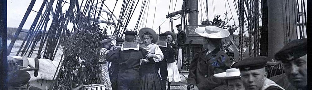 …önskar Sverigereportage med en bild från fullriggaren och övningsfartyget HMS Najaden, en midsommarafton för länge sedan när det förra seklet var ungt.