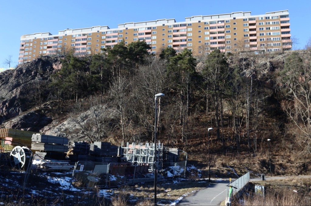 Åren 1964 till 1969 byggdes Henriksdalsringens höghus – i en kransbebyggelse. Det blev ett landmärke som syns på vida avstånd. Bostadshusen med tillhörande parkeringsplatser, trappor, vägar och betongmurar är byggt i en enorm, öppen rektangel och dominerar bergets plattå.