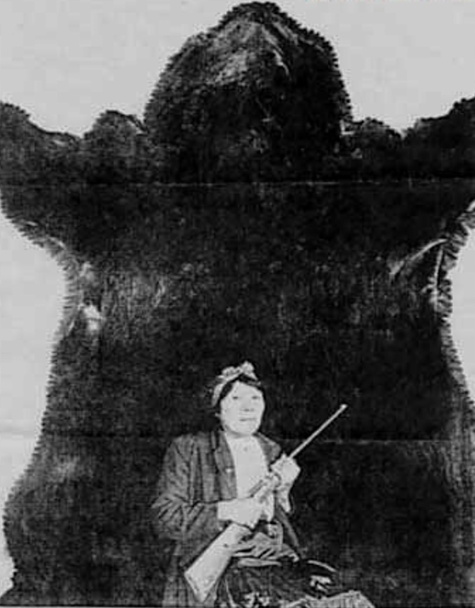 Hon fällde den enorma, närgångna björnen med ett huvudskott på några meters avstånd. Dock var hennes kanadensiska enskottsgevär från 1930-talet kamrat för kalibern 22 long och inte 22 long rifle som ofta påstås.
