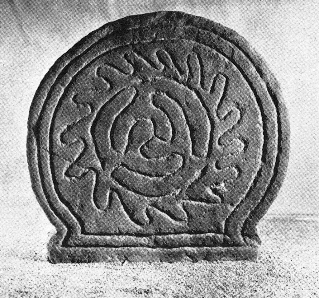 Den försvunna Edsbrostenens ena sida. Bilden visar stenens övre del. Foto: Nils Sundquist/Public Domain.