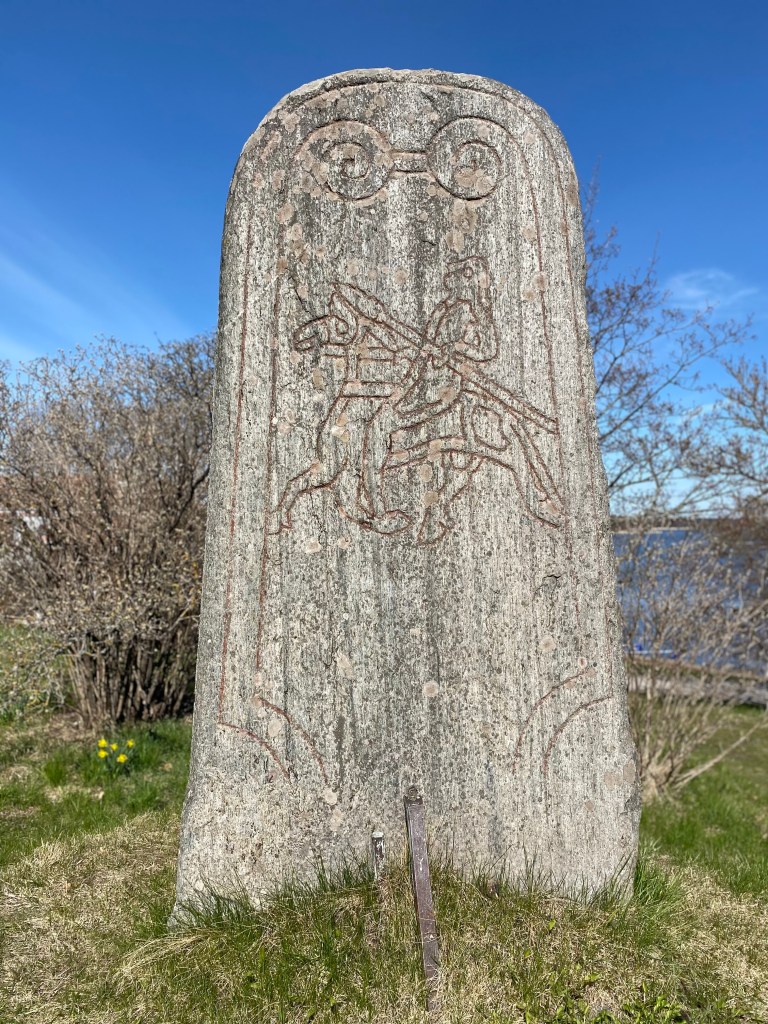 ”Andvätt och Gullev och Gunnar och Horse och Rolev läto resa stenen efter Tord, sin fader. Fot högg runorna.”