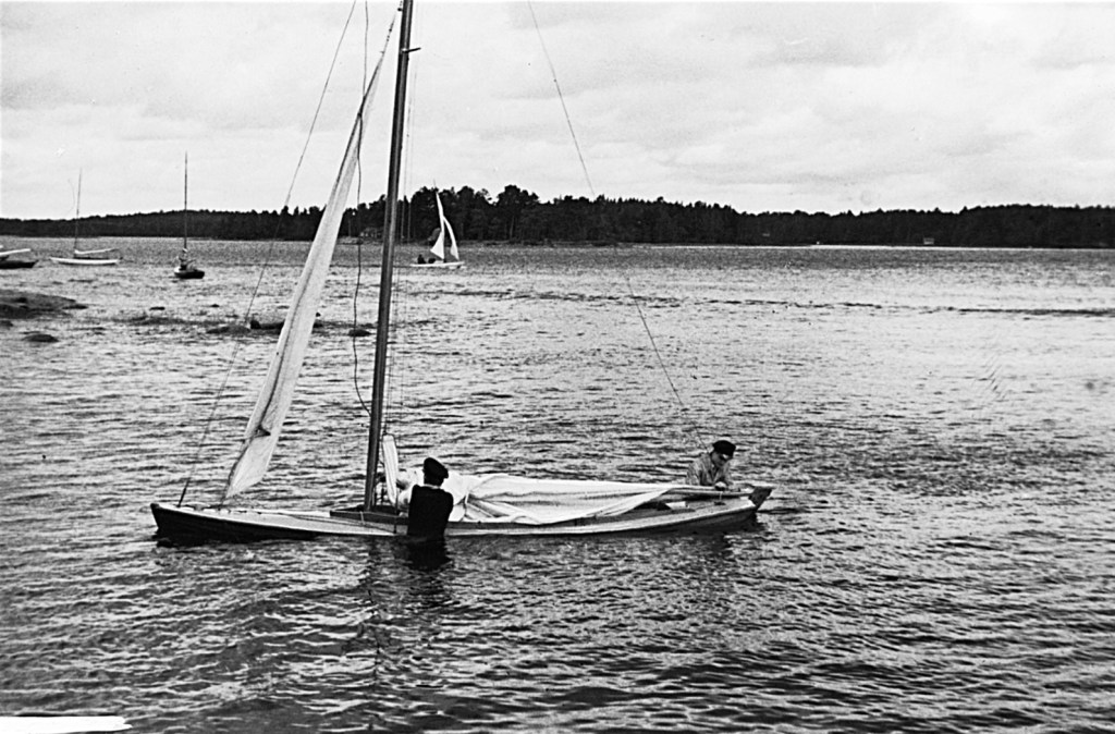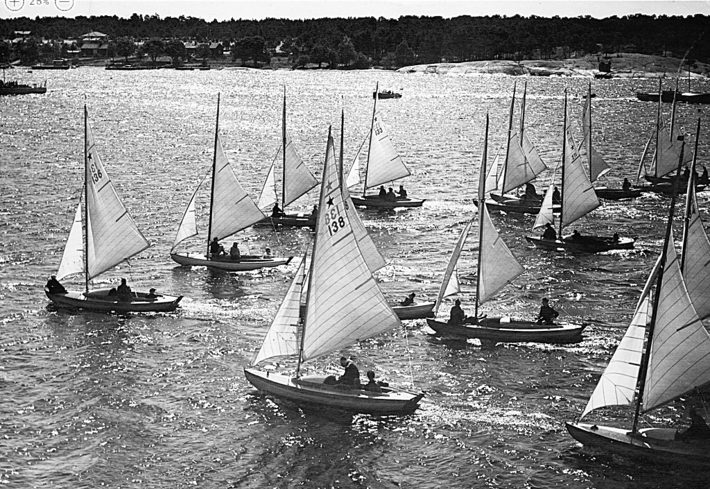 Stjärnbåtar på Rödkobbsfjärden den 28 juli 1947 i samband med juniorernas skärgårdsvecka. I förgrunden syns Stjärnbåt 138, som enligt bildens information ägdes av Jacob Wallenberg på 1950-talet.