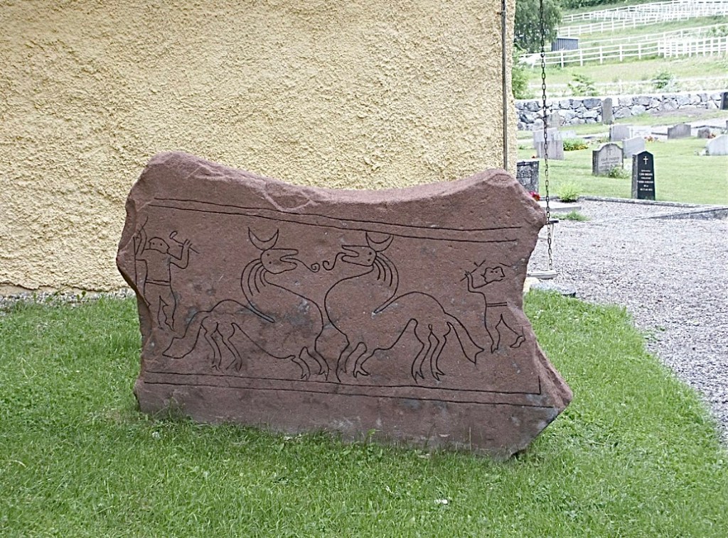 En annan bildsten kommer från Skoklosterhalvön. Den märkliga Häggebystenen är ett tunt block av röd sandsten. På ena sidan är ett skepp med höga stävar och tolv roddare avbildat. På andra sida finns en ristning bestående av två hästar och två personer. Den sistnämnda scenen skildrar en så kallad hingsthetsning.