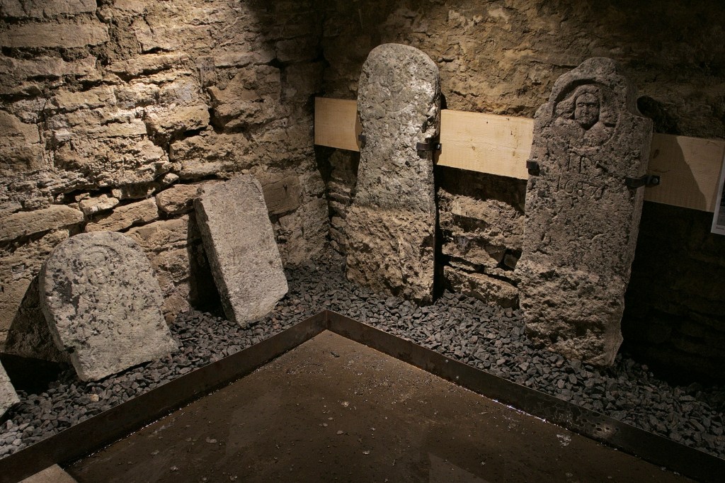 Ett stenhus som för flera hundra år sedan användes som spannmålsmagasin, lagrar nu arkeologiska mysterier och en ovanlig samling gravvårdar från en tid då endast rika bönder och adeln hade råd med gravstenar.