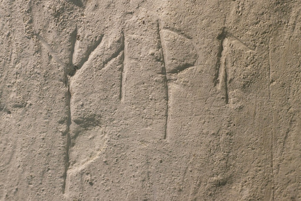 ”Maria”, har denna centimeterhöga runristning i Kinne-Vedums långhus tolkats som.