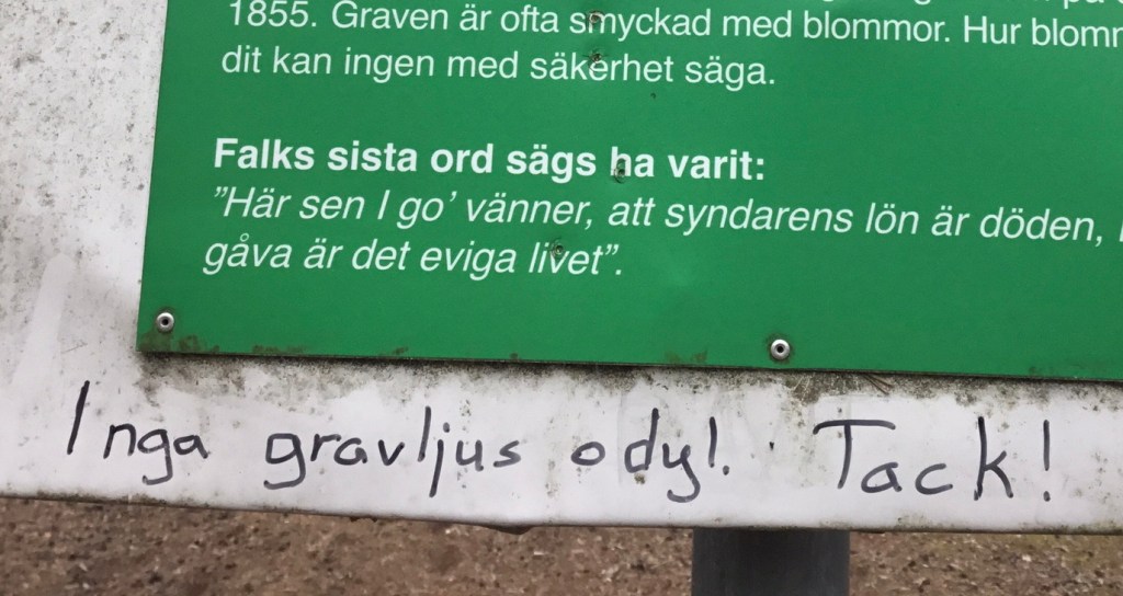 I ristningen på ett av de mest udda runbenen, som nämns tidigare i reportaget, finns uppmaning att sparka en namngiven person på benen. Ett annat runben har tolkats som: ”gott öl”.