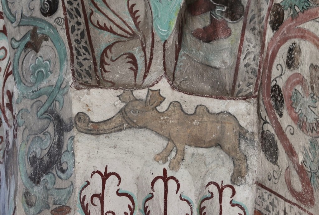 Sentida forskare är dock tveksamma om det är en kyrka. Idag tror man snarare att det är en klockstapel. Nedanför den förmodade klockstapeln står en man. Från hans ena arm går en linje upp till en klockstapel, som hänger i konstruktionen. Det är en man ringer i klockan.