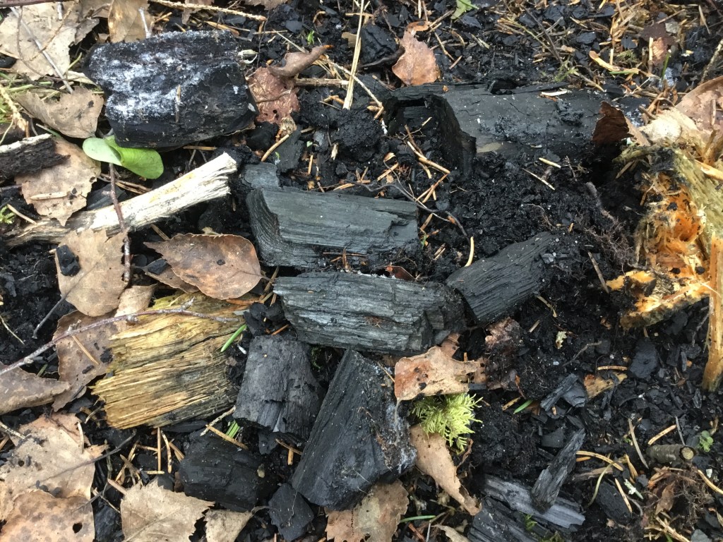Blottlagd träkol, cirka 200 år gammalt, från en kolbotten som körts sönder av en skogsmaskin.