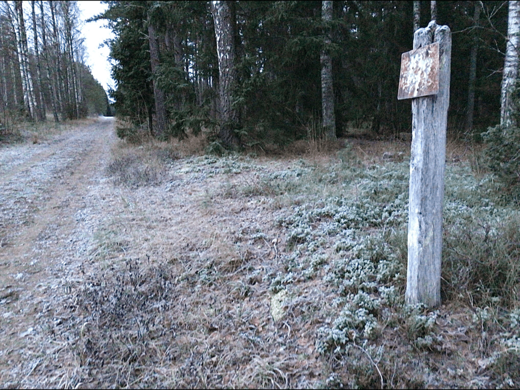 Decemberdagen skymmer och den smala stigen, som följer den igenväxta banvallen, är knappt synlig. Kvistar och grenar slår mot ansiktet. Man får gå på känn och passa sig för de gropar vildsvinen har bökat upp. Några hundar skäller på avstånd och kylan biter i ansiktet. Frosten tecknar de intilliggande vallarna och hagarna som ljusa fält i det grånande mörkret.