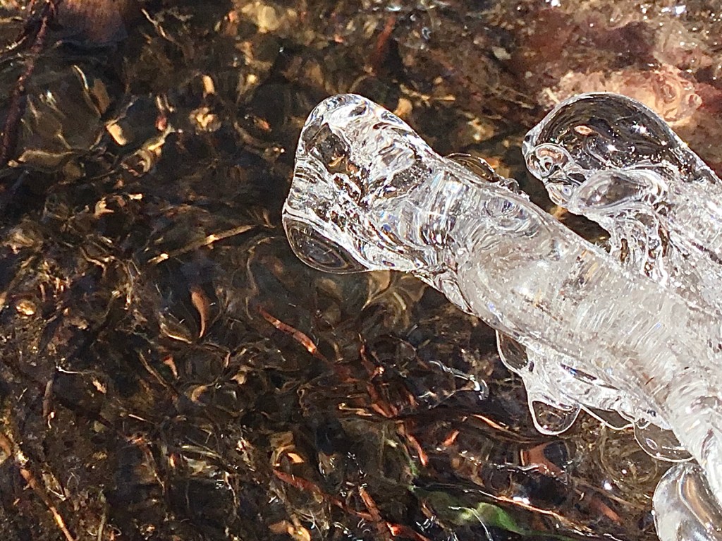 Och så är det. Överallt finns dessa små underverk, bara man tar sig tid att stanna upp och titta riktigt nära. Som i en bäckravin där morgonens vårsol tinar vattnet som frös under natten.